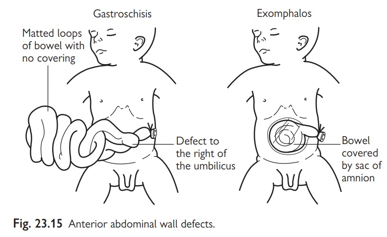 - Exomphalos – failure to reduce physiological umbilical hernia