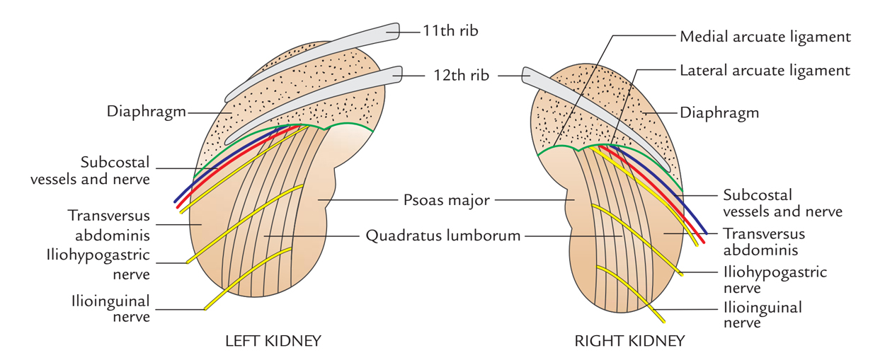 Nerves: Lesser splanchnic, least splanchnic and vagus