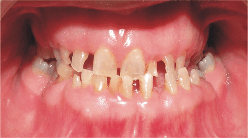 - Distorted crowns of permanent teeth