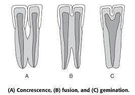 c) Concrescence – adjacent formed teeth join by cementum