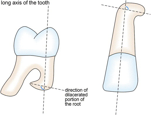 Bending of roots at an angle at long axis of tooth