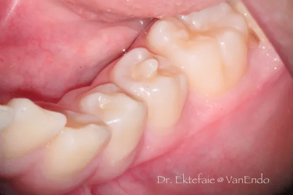 - 2 crowns share same root canal