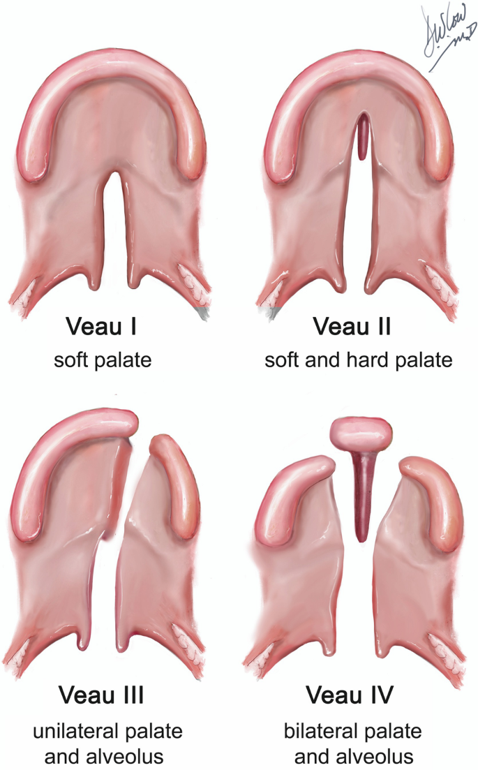| Class III | Unilateral cleft extending from uvula to alveolar process |