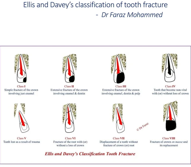 Dental age, development of crown and roots, root completion 2-3 years after eruption
