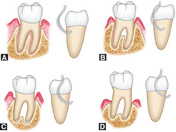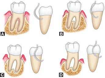 Grade 1 – Incipient, pocket formation into furcation fluting, interradicular bone intact